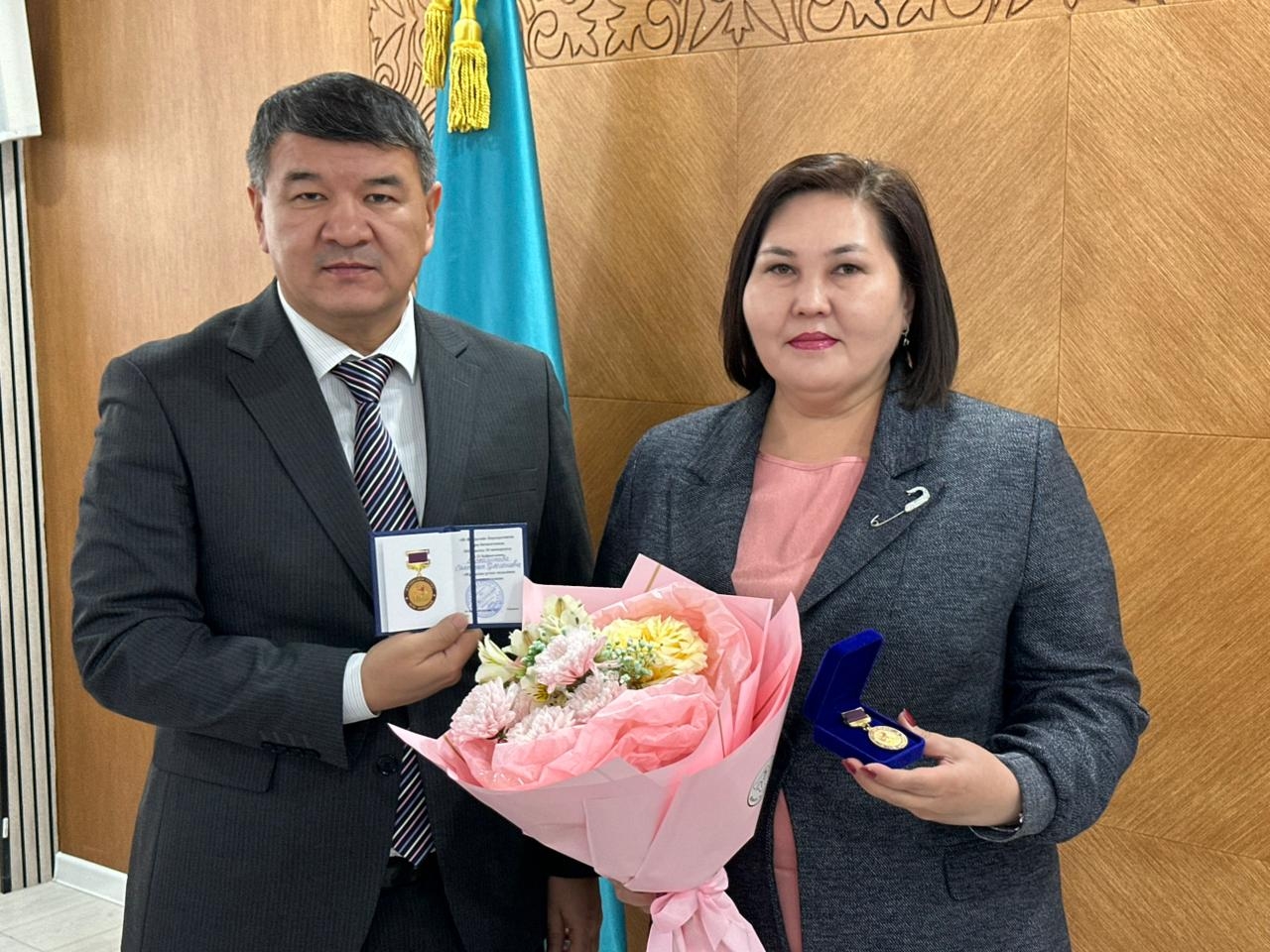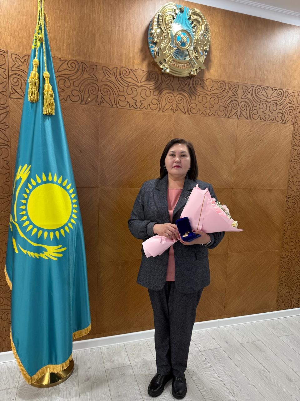 Поздравляем нашего директора Салтанат Тулегеновну с заслуженной наградой — медалью «Жұлдызды ұстаз»! от Корпоративного фонда “BI Жұлдызай”