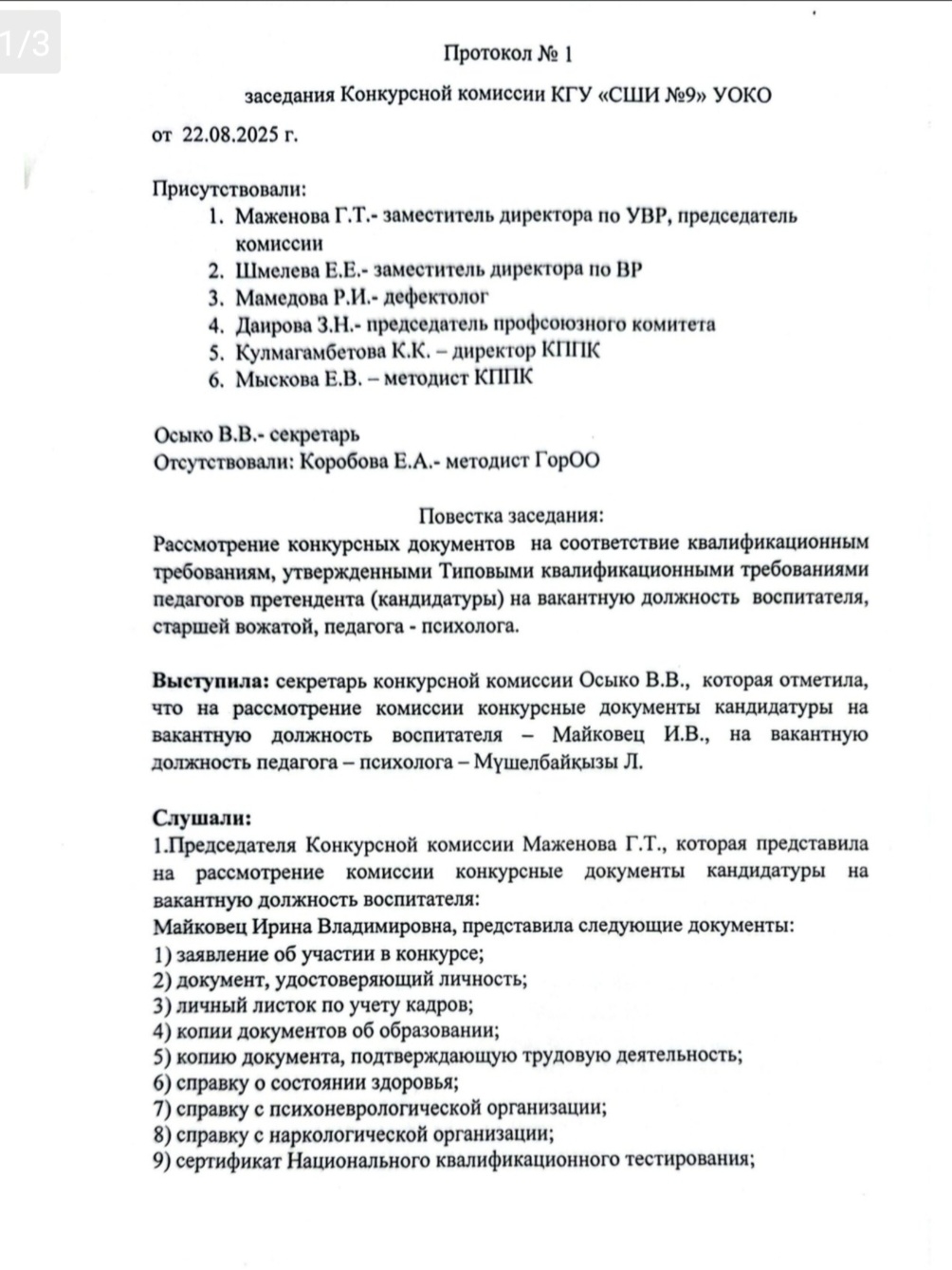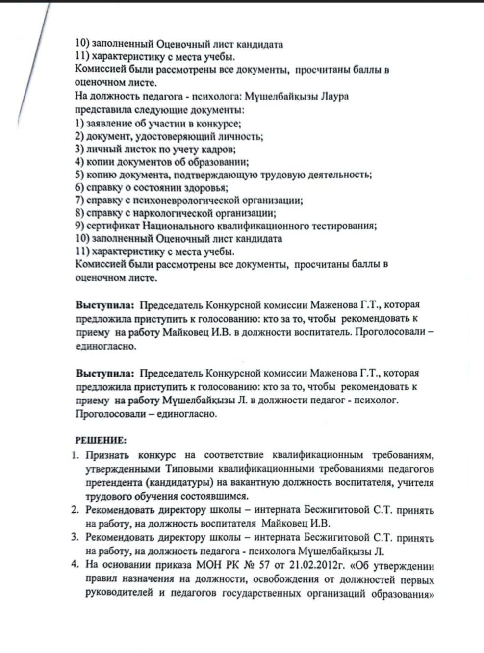 Конкурстық комиссияның нәтижелері.Результаты конкурсной комиссии.