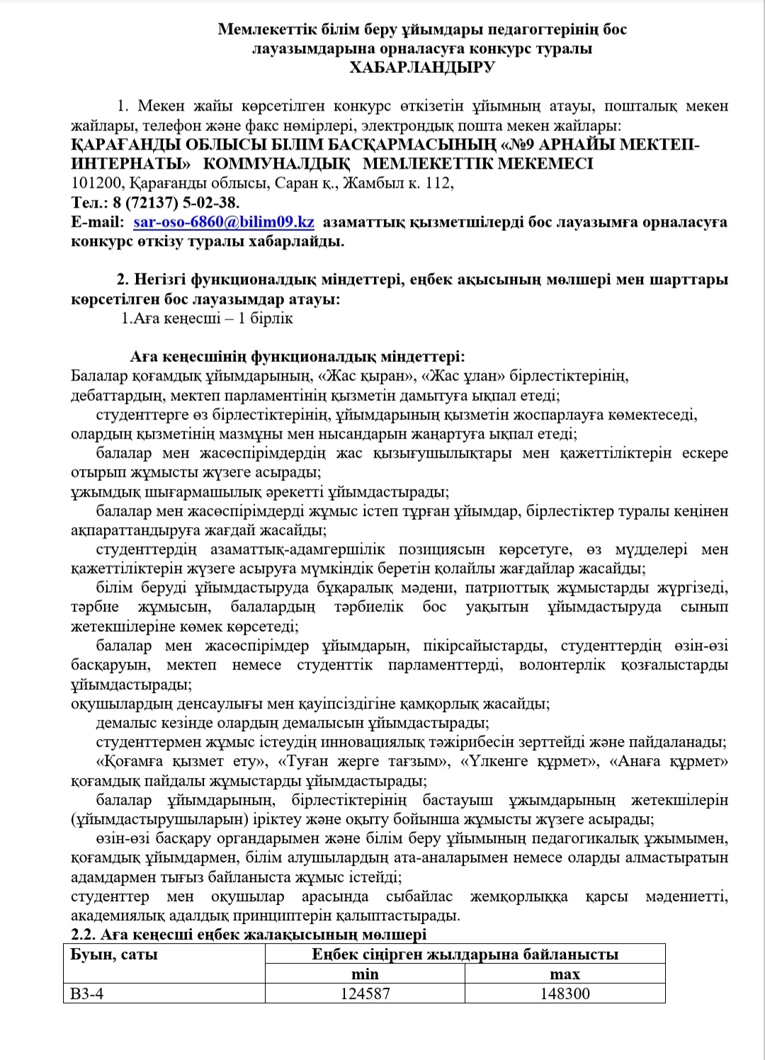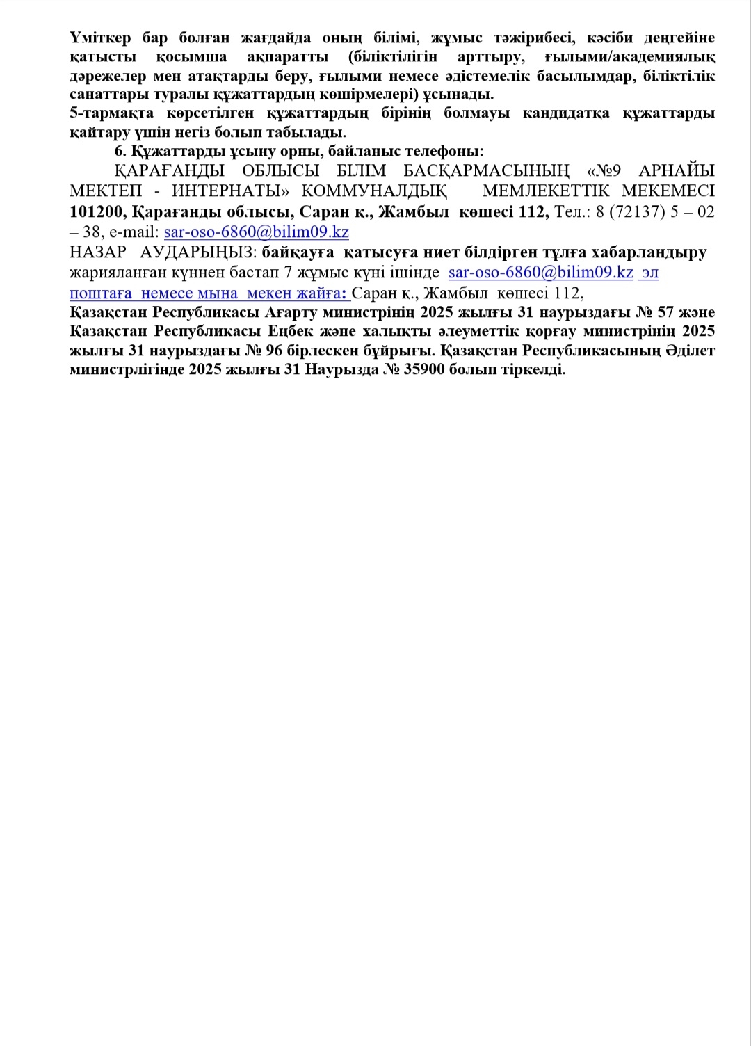 Қарағанды облысы білім басқармасының "№ 9 арнайы мектеп-интернаты" коммуналдық мемлекеттік мекемесі