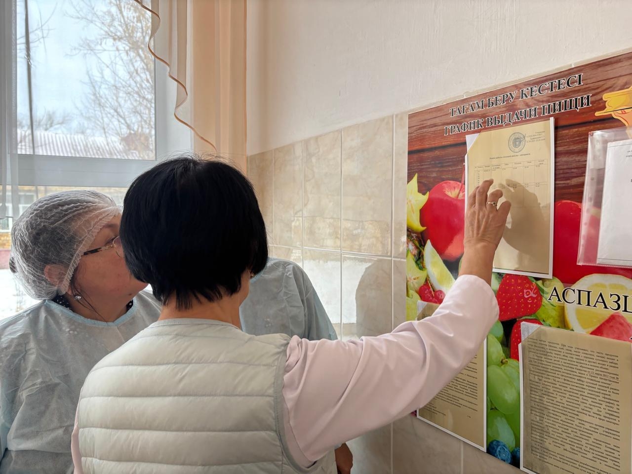 Мектеп-интернатында білім алушылардың тамақтануын ұйымдастыру бойынша жоспарлы тексеру жүргізілді. Бақылау барысында тағамдардың дайындалу сапасына, олардың бекітілген мәзірге сәйкестігіне, өнімдерді сақтау шарттары мен жарамдылық мерзімдерінің сақталуына, сондай-ақ тамақ дайындау кезіндегі технологиялық талаптардың орындалуына ерекше назар аударылды. Тексеру аясында ас блогының санитарлық жағдайы, өнімдер мен дайын өнімдерді есепке алу құжаттамасы, шикізатты салу нормаларының сақталуы және білім алушылардың тамақтану режимі талданды.