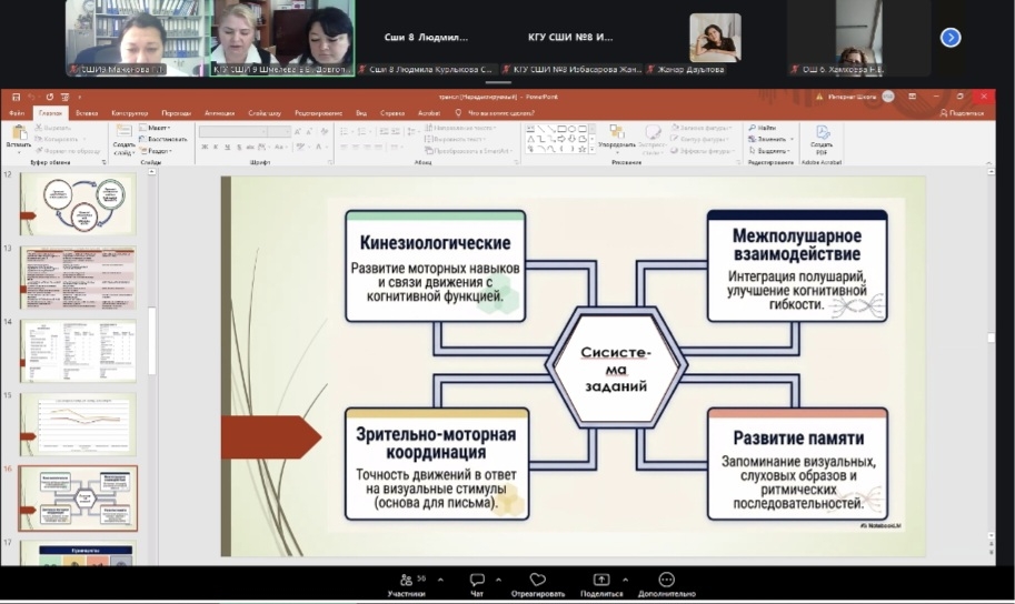 «Бастауыш сыныптағы зерде бұзылыстары бар балалармен оқу-тәрбие процесінде нейроойындар мен нейрогимнастика жаттығуларын қолдану» атты шеберлік сабағы.