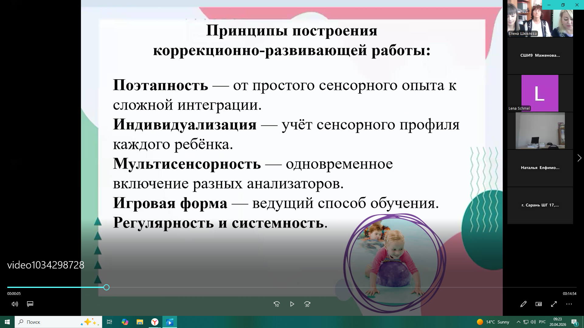17 апреля был проведён мастер-класс на тему развития сенсорной интеграции у обучающихся с умеренными нарушениями интеллекта, на котором выступили педагоги-дефектологи Михайличенко И.К., Иванова А.И. и Пак Е.А. Педагоги представили методические рекомендации по развитию сенсорной интеграции у обучающихся с умеренными нарушениями интеллекта. Они рассказали о важности сенсорного развития, особенностях таких детей и представили систему коррекционной работы, основанную на игровых упражнениях. Также были раскрыты цели, задачи, этапы реализации программы, принципы организации занятий и полученные положительные результаты в развитии детей.