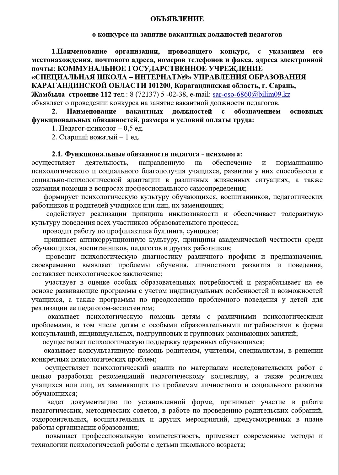Қарағанды облысы білім басқармасының "№ 9 арнайы мектеп-интернаты" коммуналдық мемлекеттік мекемесі